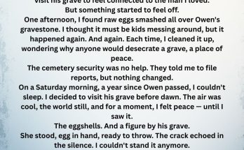 Every Sunday, I visited my husband’s grave to feel close to him, until I found raw eggs smashed against his gravestone. At first, I thought it was a cruel prank, …