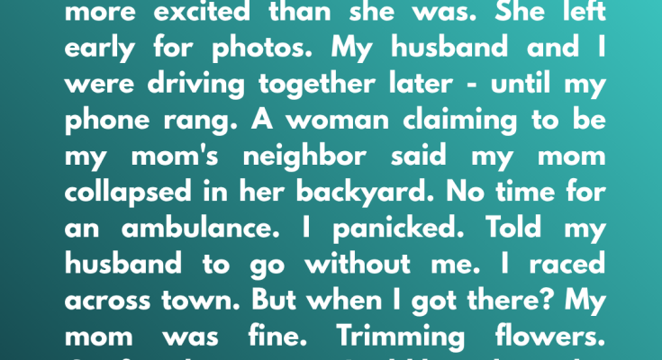 “It’s your mom,” she said. “She collapsed in her backyard. I’m her neighbor—I just found her. She’s not responding well. I don’t think we have time to wait for an ambulance.”