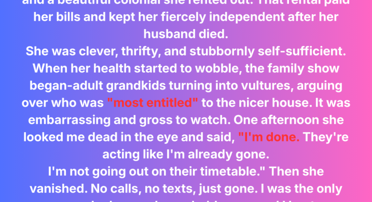 Margaret was 83, fiercely independent, and tired of her family circling her like vultures. When she vanished without a trace, leaving behind only a cryptic note, her children were frantic. They never imagined her bold final move would leave them stunned.