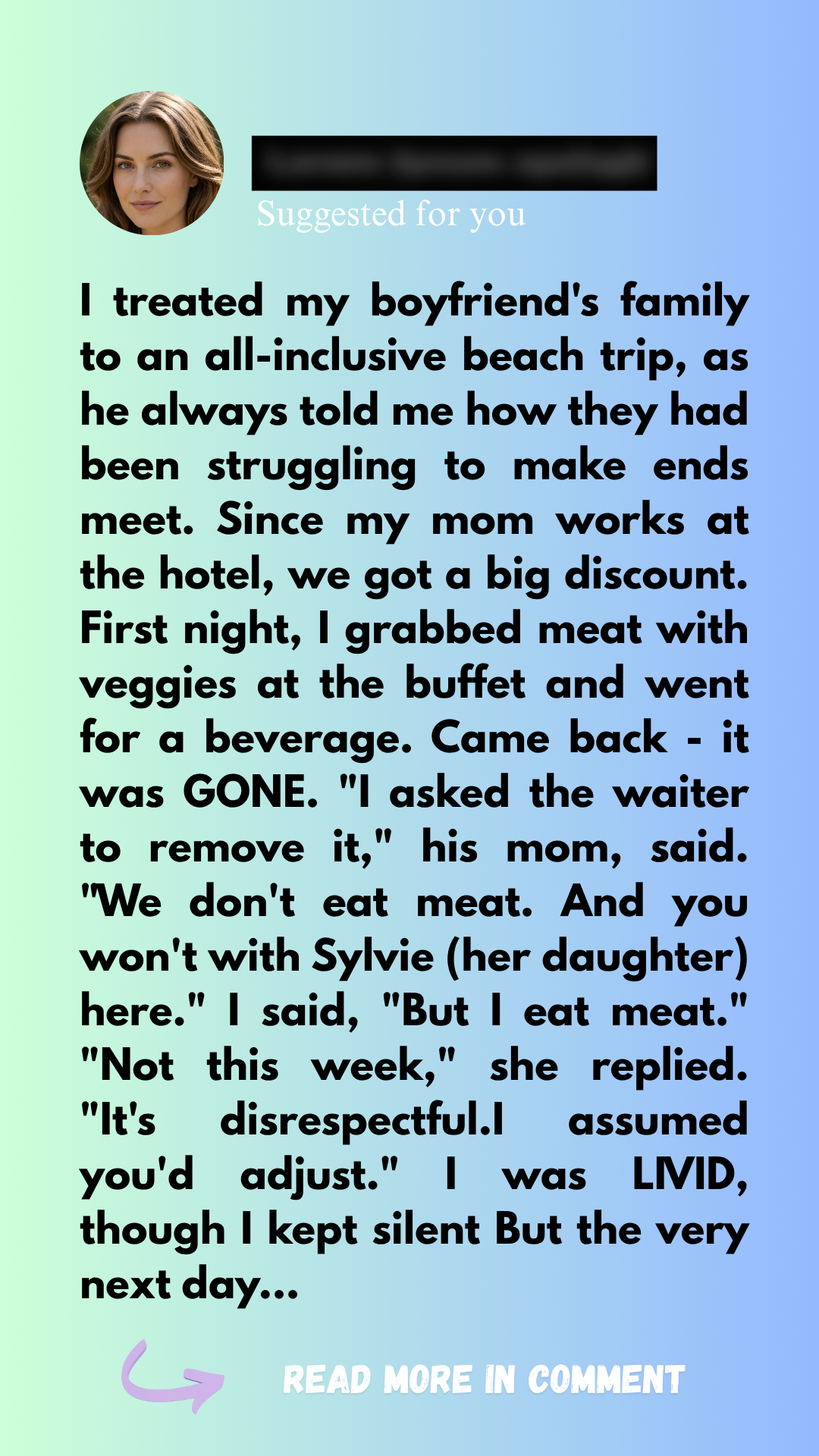 I paid for the entire vacation… then my boyfriend’s mom told me what I was “allowed” to eat. That was her mistake.