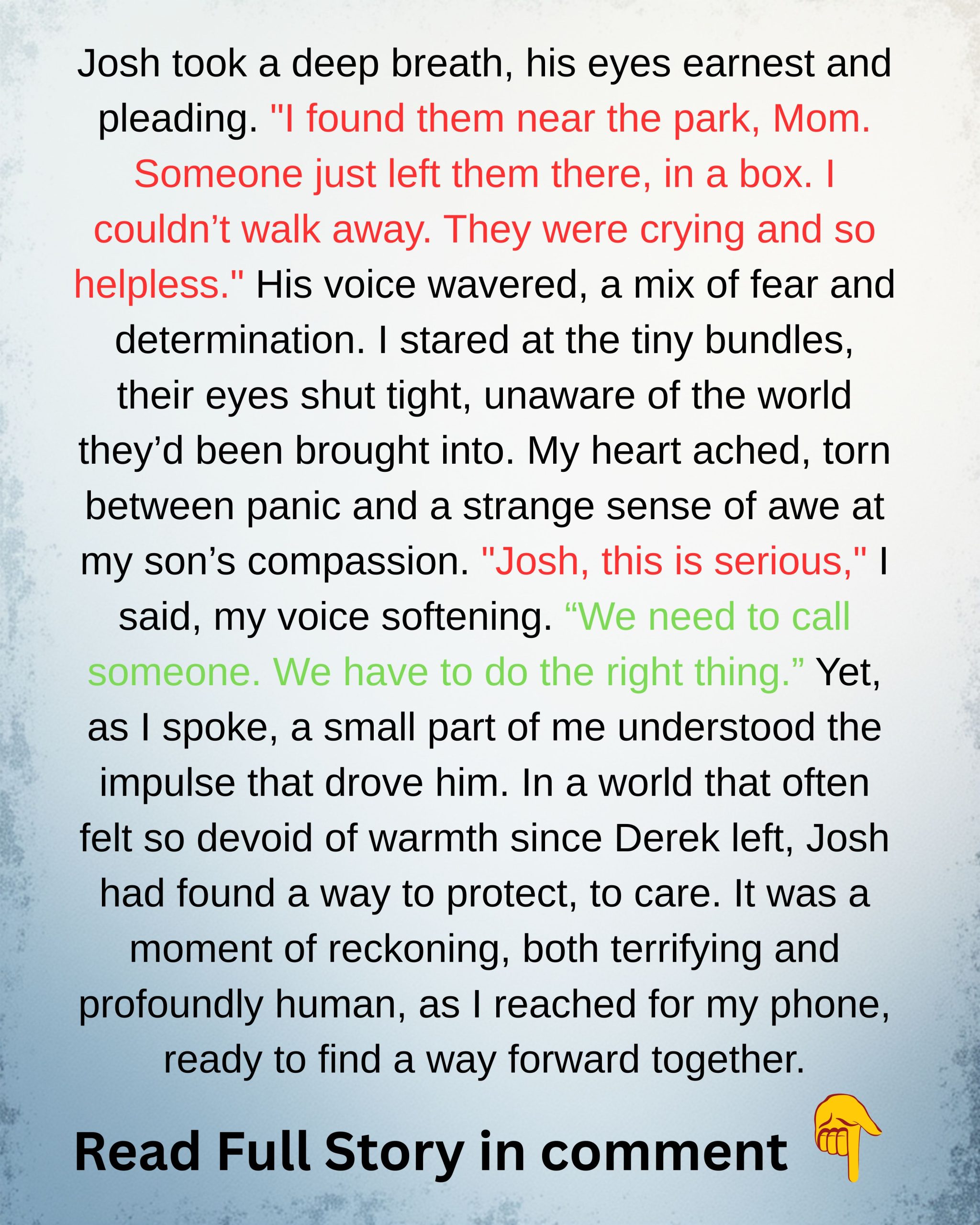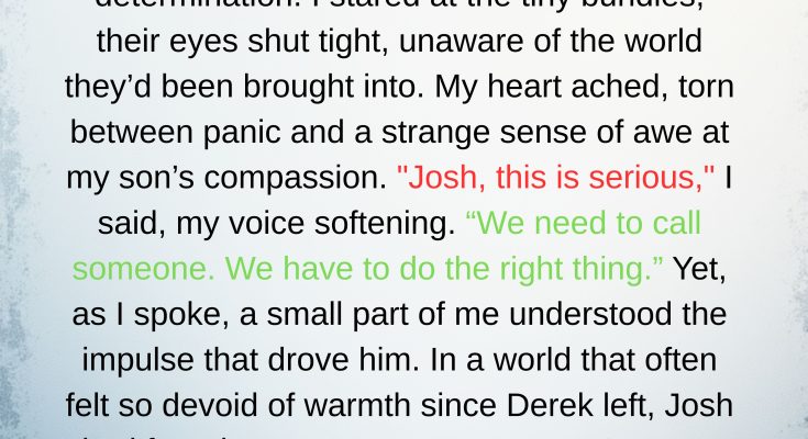 I’m Jennifer, 43, and for years I’d been holding our small family together after a brutal divorce left me and my son, Josh (16), scraping by. One ordinary afternoon I was folding laundry when Josh opened his bedroom door and stood there with two newborns in his arms — tiny, wailing, wrapped in hospital blankets. He looked at me and said, “Sorry, Mom, I couldn’t leave them.” My world tilted. He told me he’d seen his father, Derek, storm out of the maternity ward where Derek’s girlfriend, Sylvia, had just given birth to twins — and that Derek had refused to help. Josh had convinced the nurses and a family friend at the hospital to let him take the babies temporarily because Sylvia was alone and very sick.I felt panic, anger, and disbelief all at once. How could a 16‑year‑old be responsible for newborns? But when Josh explained Sylvia’s condition and how she’d signed a temporary release, the choice became clear: we couldn’t leave the babies to the system. We drove back to the hospital, met Sylvia in a fragile state, and brought the twins home under temporary guardianship while she fought for her life.Those first weeks were chaos. Josh — who should have been doing homework and being a teenager — became a caregiver. He named them Lila and Mason, found a second‑hand crib with his savings, and learned to soothe, feed, and change diapers at all hours. When Lila spiked a high fever, the ER discovered a congenital heart defect that required urgent, expensive surgery. We used nearly all our savings to pay for the operation; the surgeon said the procedure was risky but necessary. Josh never left Lila’s side through the long hours and recovery.A few weeks later, Sylvia died from complications. Before she passed, she updated legal documents naming Josh and me as the twins’ guardians and left a note asking us to care for them — calling Josh their savior. Derek showed up briefly to sign papers and then walked away, later dying in an unrelated accident; his absence never changed what we’d already decided to do.A year on, our tiny apartment is full of noise, toys, and love. Josh is older in ways no teenager should be — he gave up some plans and friendships, but he insists the twins aren’t a sacrifice; they’re family. I still worry about bills and the future, but when I watch Josh asleep between the cribs with tiny hands curled around his fingers, I know we made the right choice. We’re exhausted and imperfect, but we’re together — and sometimes that’s enoug