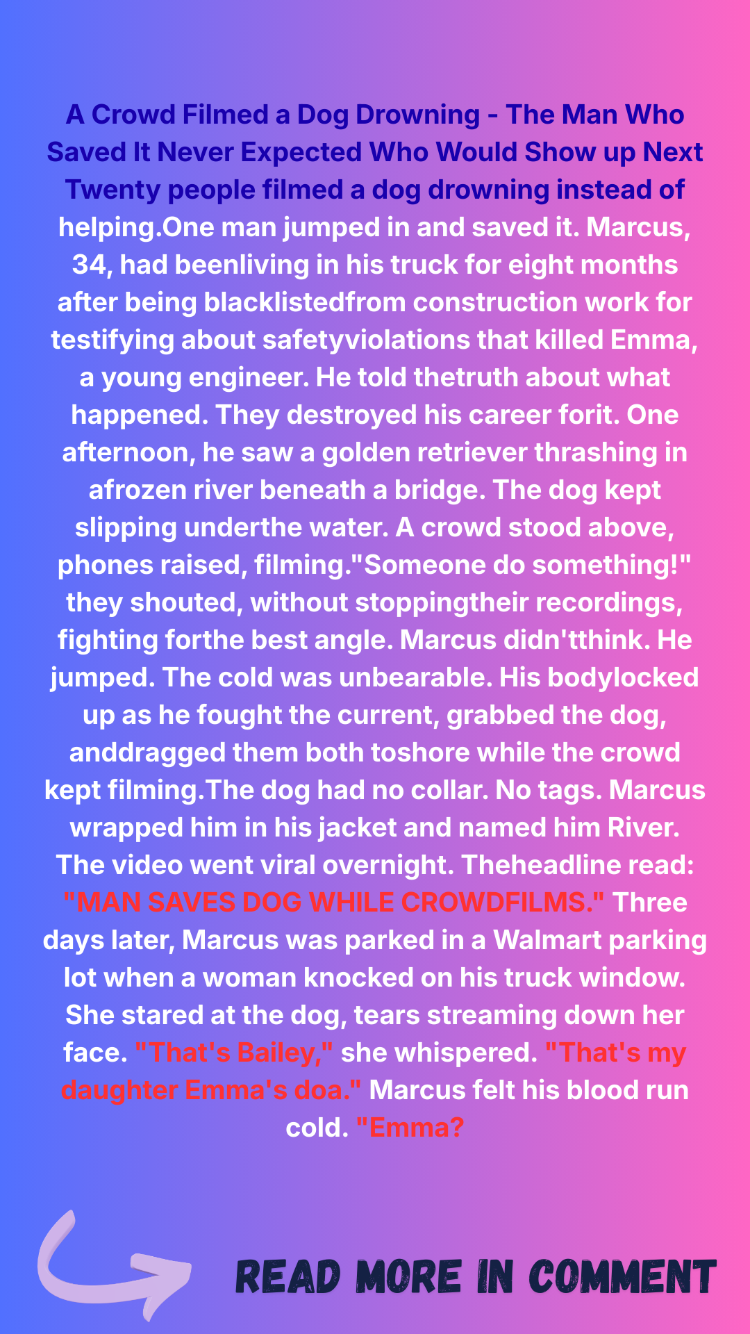 The video has 20 million views now. The world saw me jump into the river like some kind of cinematic martyr. People still send me messages. “You’re amazing.” “You’re a hero.” “That video gives me hope.”