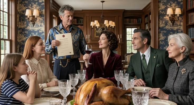 The dining room of my parents’ sprawling $1.5 million house in the Chicago suburbs smelled heavily of roasted turkey, expensive sage, and artificial harmony. It was Thanksgiving, the one day of the year we all pretended to be a functional, loving family. The atmosphere in the room, however, was incredibly suffocating. The heat was turned up entirely too high, and the heavy crystal glasses clinked awkwardly as everyone avoided talking about anything real. My father, Edward, stood up at the head of the massive oak table. He tapped his crystal champagne flute with a heavy silver spoon until the room fell completely silent. He puffed out his chest, looking around the table with an expression of immense, unearned pride. Beside him, my mother Diana wore that familiar, smug little smile she always plastered on her face right before she did something incredibly cruel and tried to mask it as family loyalty.