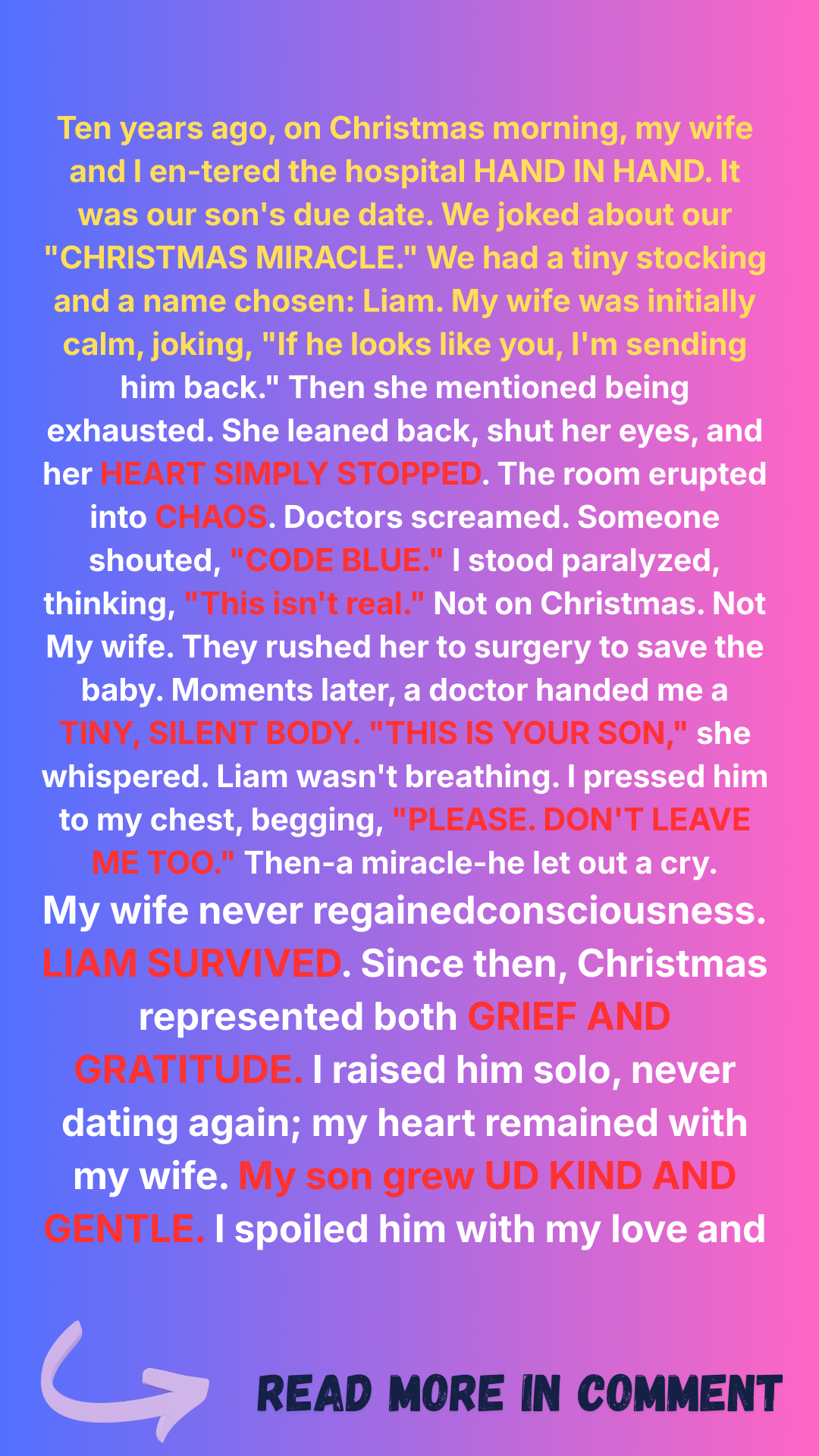 Then, just hours later, my wife’s hand went limp. Her head dropped, and chaos filled the room. They rushed her into surgery. I paced outside in the waiting room.