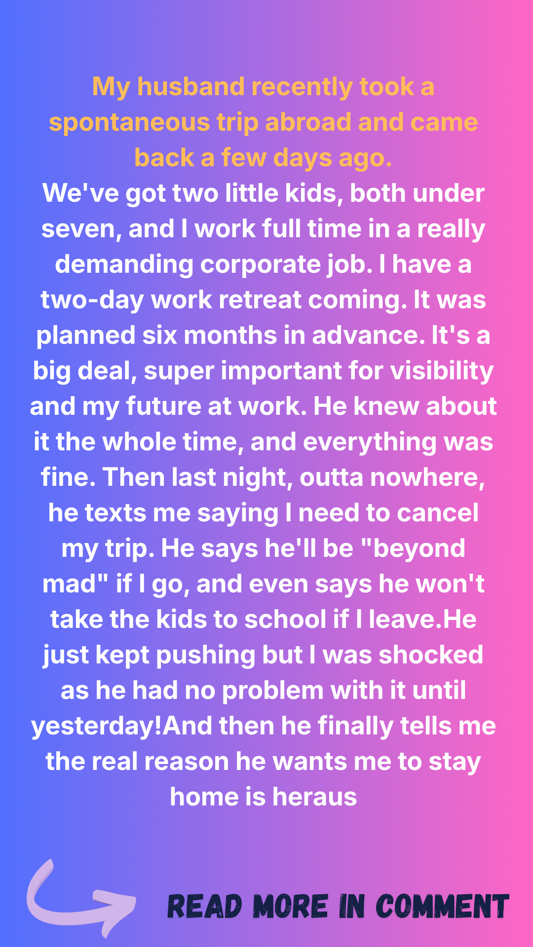 My husband was always okay with me going on work trips and didn’t mind taking care of the kids when I was gone. But one trip, unlike the others, changed things completely.