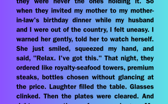 I stood there in the hallway, heartbeat in my ears, trying to decide if she’d warned me or poisoned me.