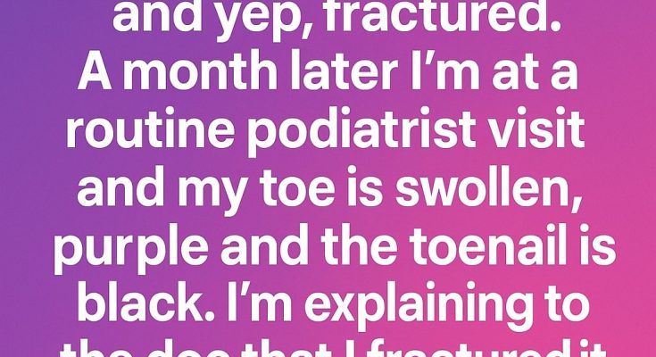 I explained to the doctor that I had fractured it and was worried something was wrong. He looked closely at my poor little toe and said calmly, “You’ve actually done a great job taking care of it.”