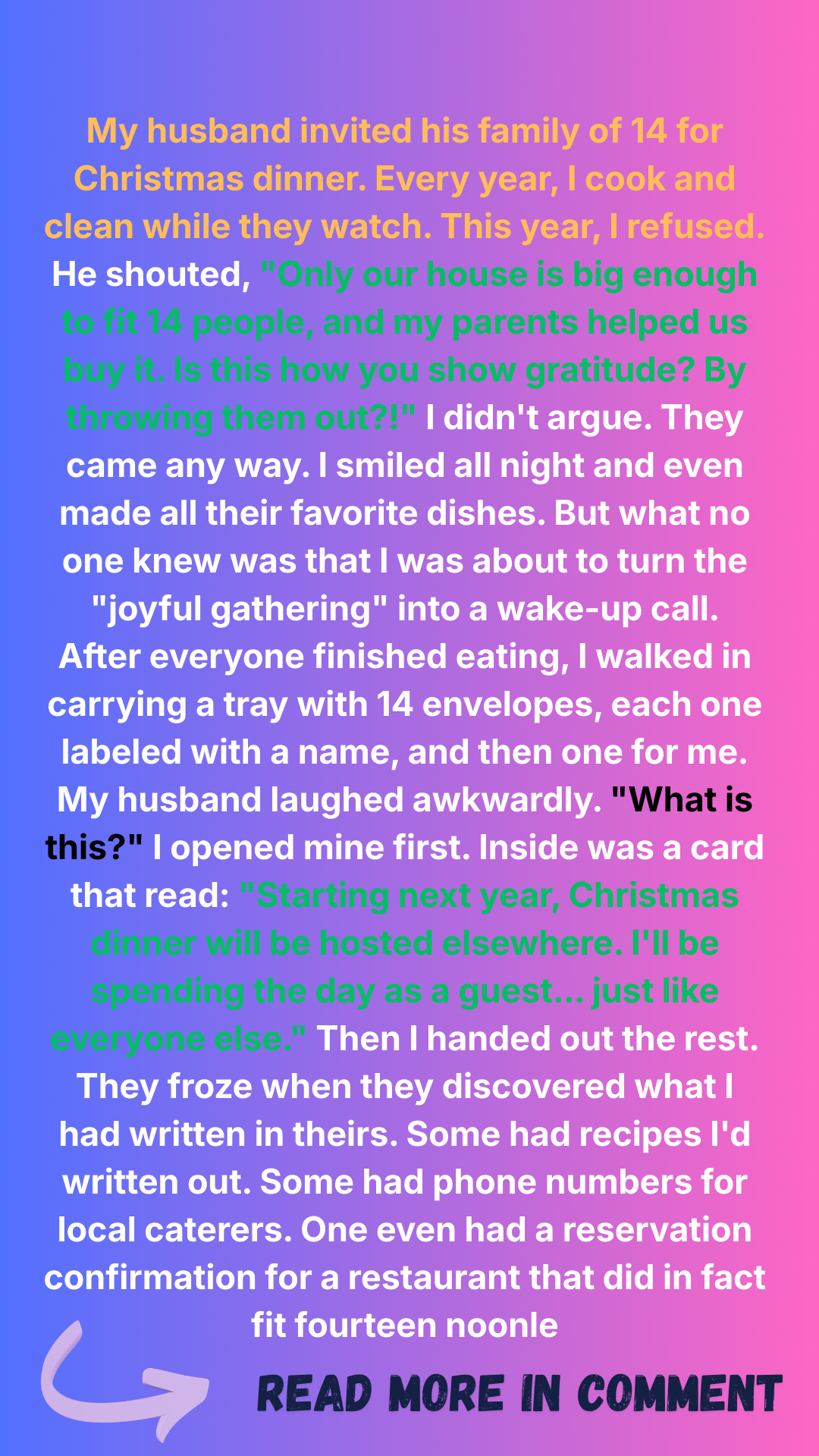 I opened mine first. Inside was a card that read: “Starting next year, Christmas dinner will be hosted elsewhere. I’ll be spending the day as a guest… just like everyone else.”