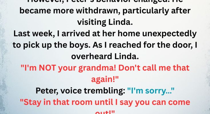 Peter has seemed quieter, more withdrawn, especially after spending time with Linda. I’d ask him, “Is everything okay, honey?” and he’d just shrug, “Yeah, I’m fine, Mom.” But I could tell something was off. I didn’t want to push him, so I waited, hoping he’d open up when he was ready.