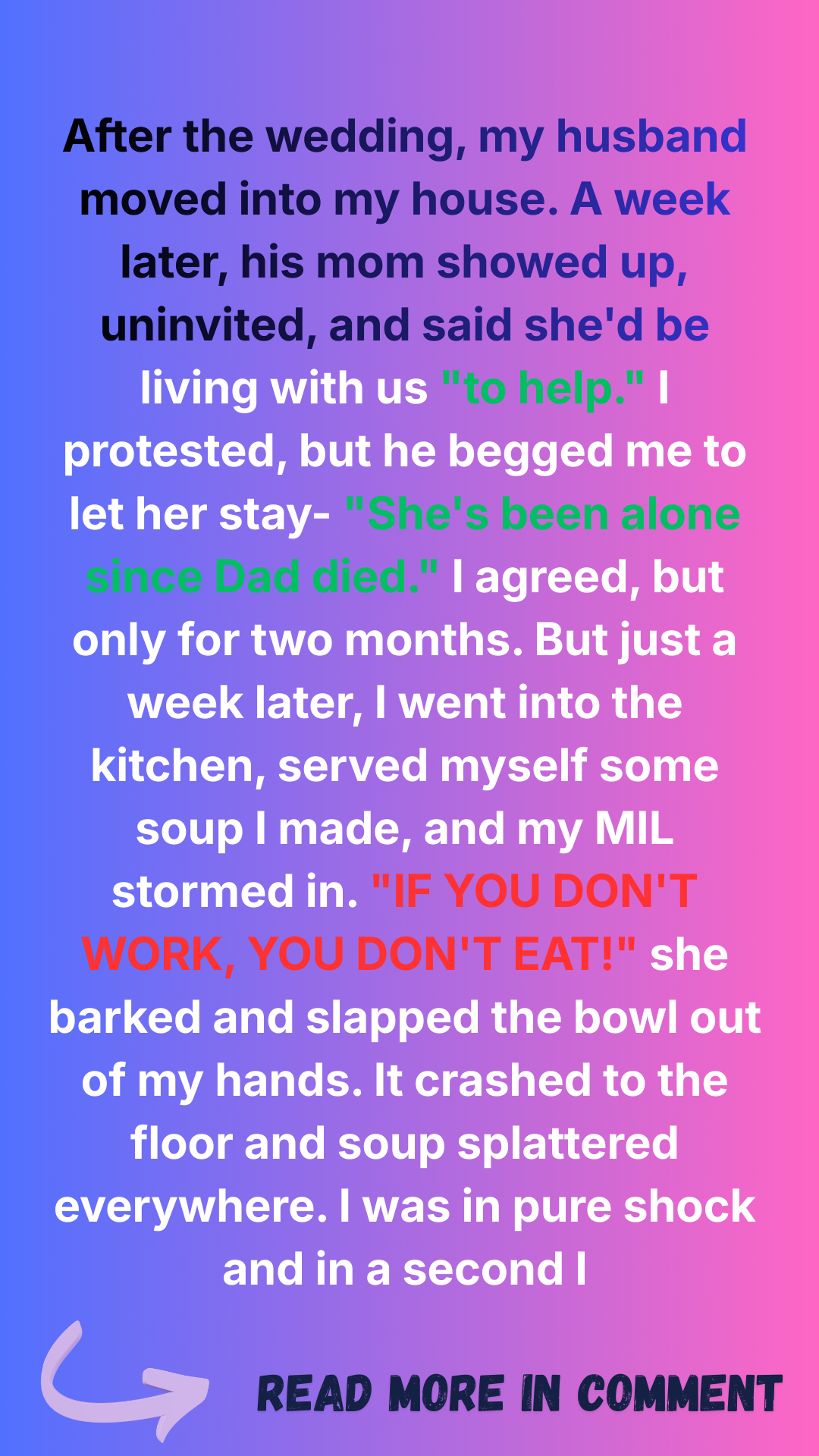 My MIL moved into my house… then told me, “If you don’t work, you don’t eat