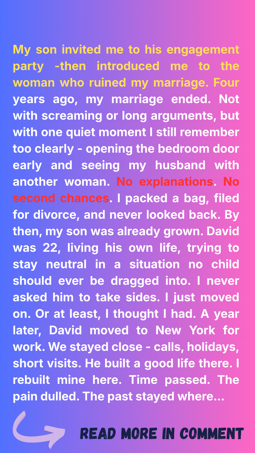 For a second, the party disappears and I’m staring at my own bedroom again. Sheets. Skin. My husband’s guilty face. Her wide eyes.