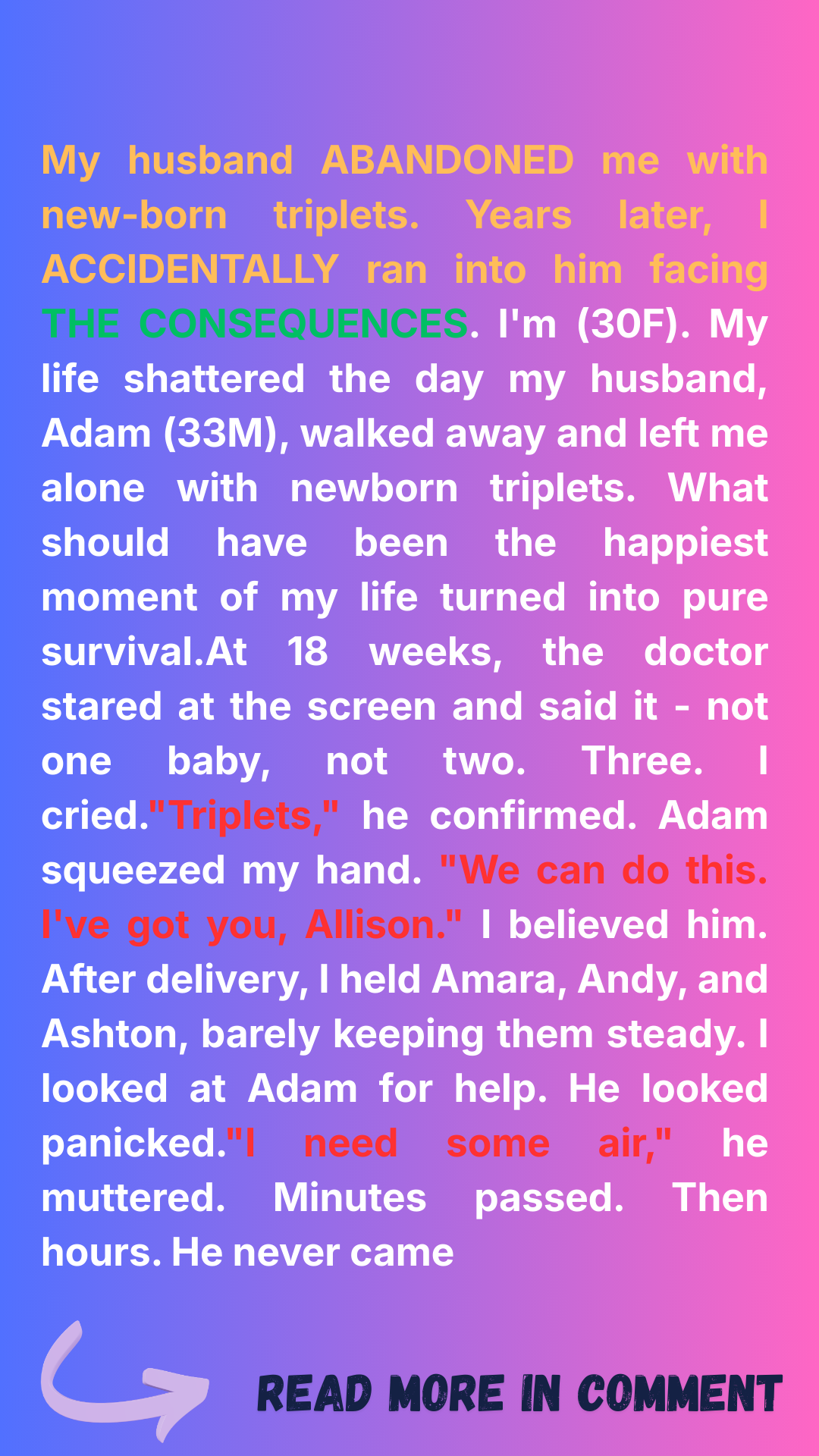 “We can do this, Alli,” Adam had said, squeezing my hand. “I’ve got you. I’ve got them. Fate has given us three little loves.”