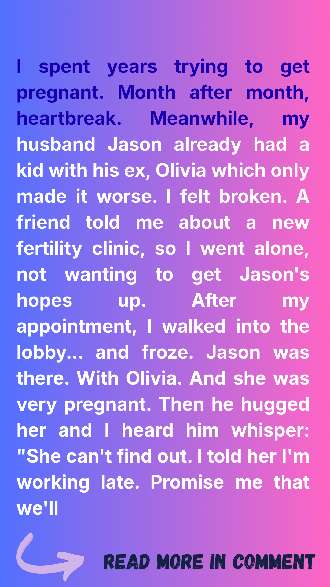 “Because I’m an idiot,” he said, tears in his eyes. “Because I know how much you’ve suffered trying to get pregnant. I thought seeing Olivia carry a child… my child… would destroy you. I thought it would be easier if I just handled it myself.”