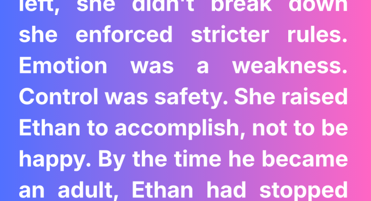 She had never been a woman of warmth. When Ethan’s father left, she didn’t cry or falter—she tightened the rules. Feelings were weakness. Discipline was safety. She raised her son to achieve, not to be content.