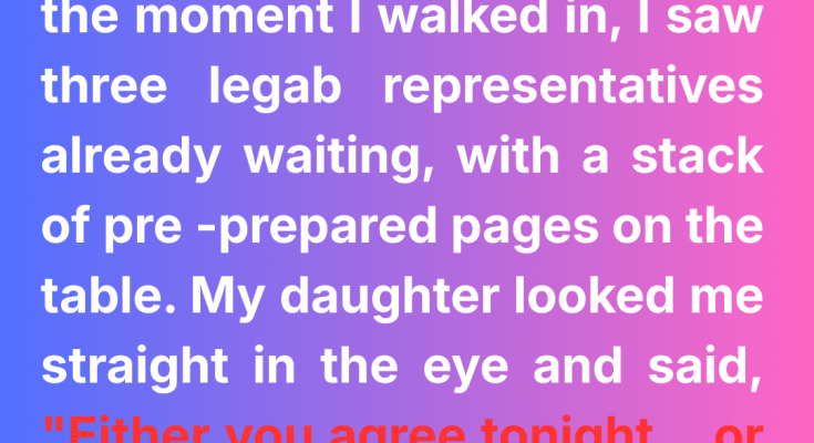 After I refused to pay for my daughter’s luxury wedding, she blocked my number. A few days later she texted, all sweetness and olive branches, and invited me to a “reconciliation dinner.” But the moment I walked into the dim, warm light of the Italian restaurant on Meridian Street, I saw three men in suits already waiting at our table, a neat stack of paperwork laid out between the water glasses. My daughter looked me straight in the eye and said, “Either you agree tonight… or you won’t be part of your grandson’s life anymore.”