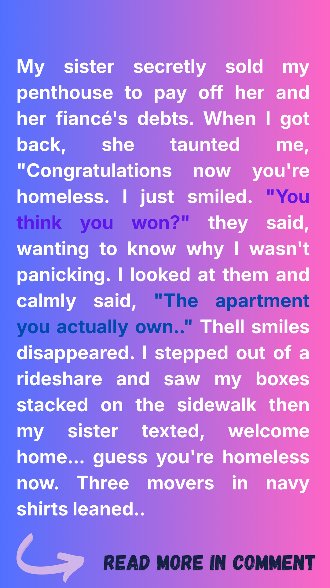 My sister sold my penthouse behind my back to pay off her and her fiancé’s debts. When I returned, everything changed