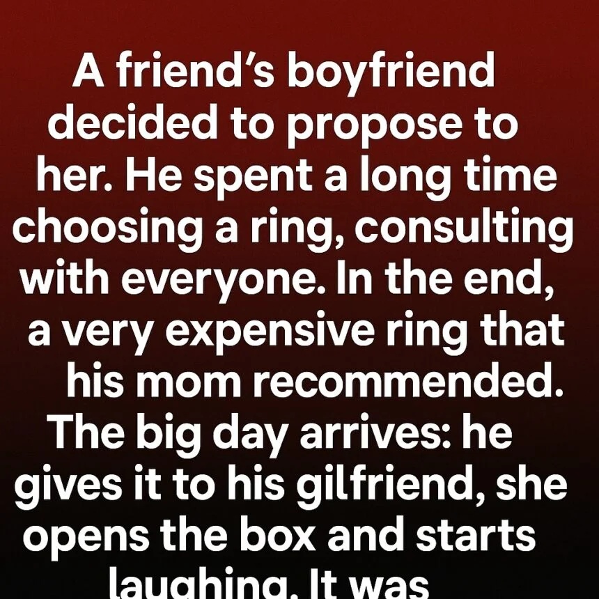 A friend’s boyfriend spent weeks preparing for the perfect proposal, hoping everything would feel meaningful. He asked everyone he trusted for advice, wanting the ring to reflect how much he cared. His mother suggested a beautiful and expensive design, believing it would suit his girlfriend perfectly.