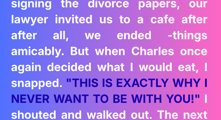 After we signed the divorce papers, our lawyer suggested we go to a café together. He said it might help us part amicably.