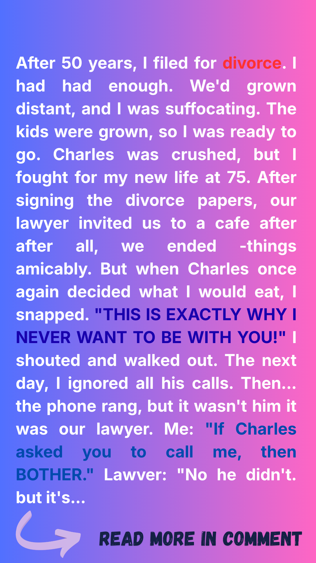 After fifty years of marriage, I finally filed for divorce.