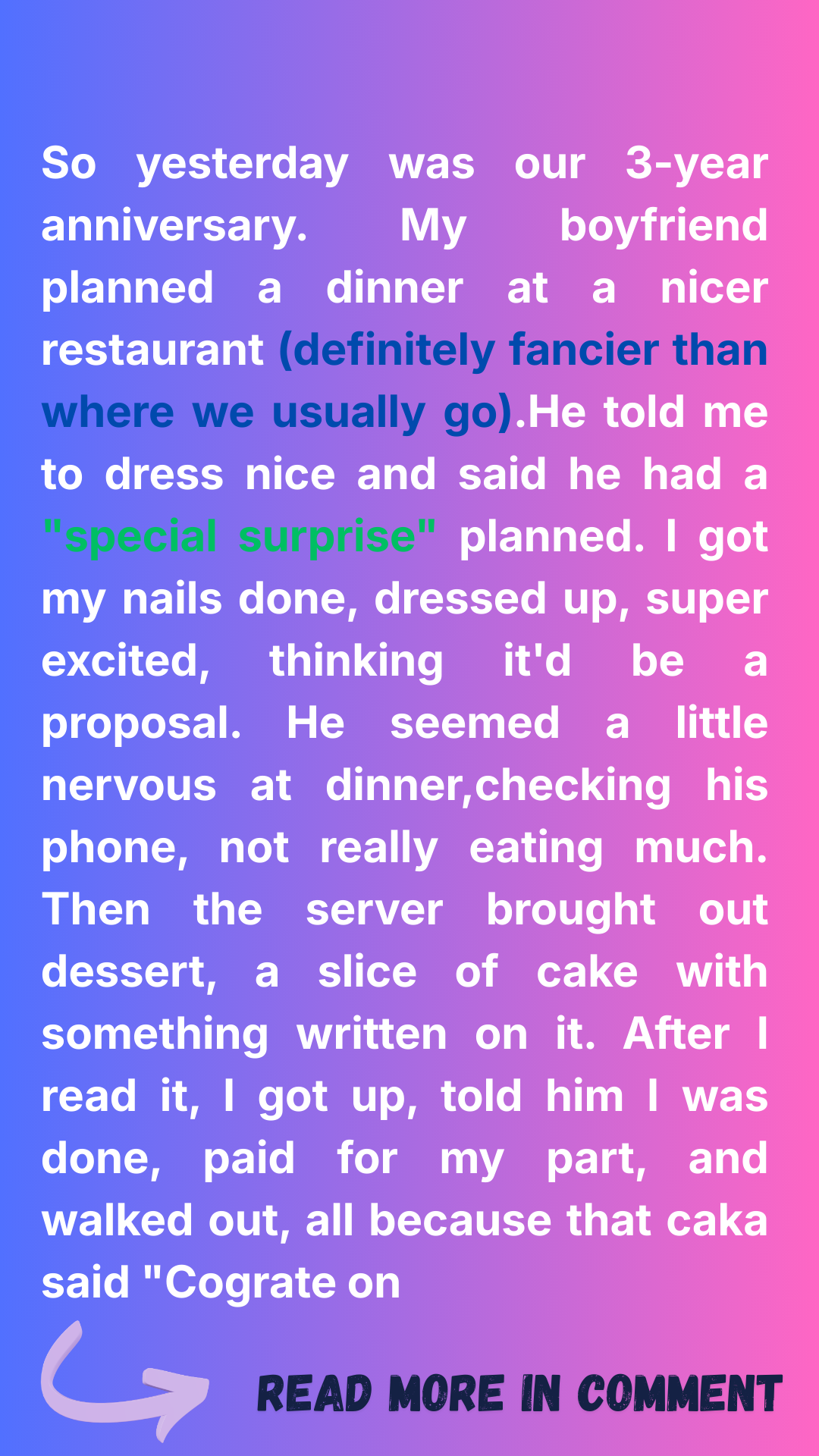 So, I got my nails done, curled my hair, dressed up, super excited, thinking the moment I’d been waiting for was finally here. I wore a long emerald-green dress, the one he once said made me look like something out of a movie.