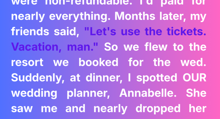 It sounded ridiculous — but maybe ridiculous was exactly what I needed. So we flew there, and that evening, as we headed to dinner, I saw her. Annabelle — our wedding planner — standing outside the ballroom as though nothing had ever changed.