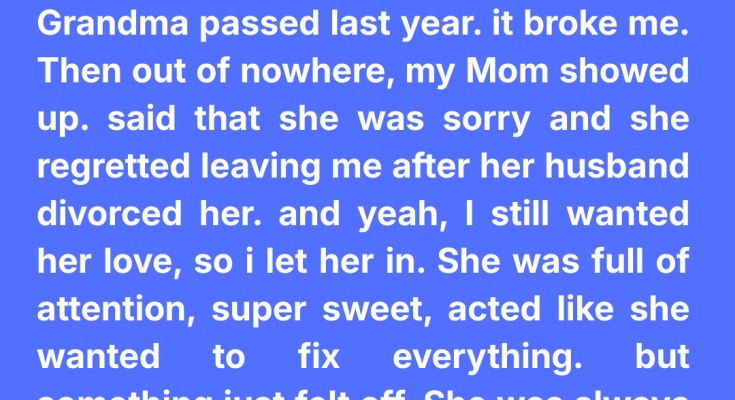 At first, it seemed perfect. She called regularly, took me to lunch, and asked about my job and friends. She cried when I showed her old photos of me and Grandma Rose during my teenage years.