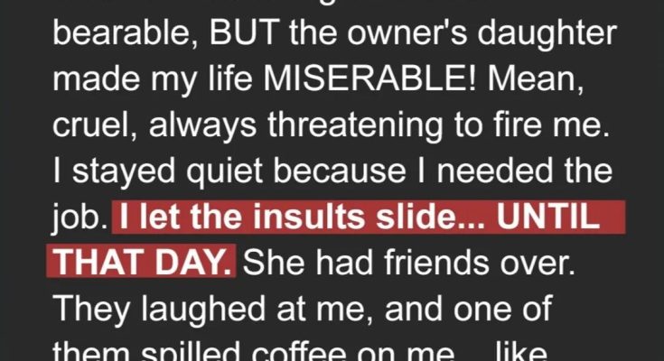 For months, Hailey endured the harsh treatment of her boss’s daughter, Tris, and her wealthy friends. As the maid, she was dismissed and insulted, expected to serve quietly while being humiliated. But Hailey’s life wasn’t what it seemed—beneath the uniform was a woman with dreams, resilience, and a surprising secret that no one suspected.