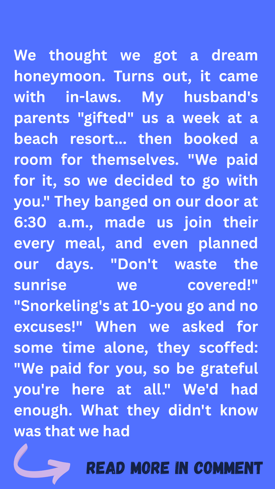 The whole thing wasn’t just funny — it was a lesson. Our honeymoon wasn’t a room number or a dinner reservation — it was our first act as a married couple. We learned boundaries, learned to say “no,” and learned to protect the moments that matter most.