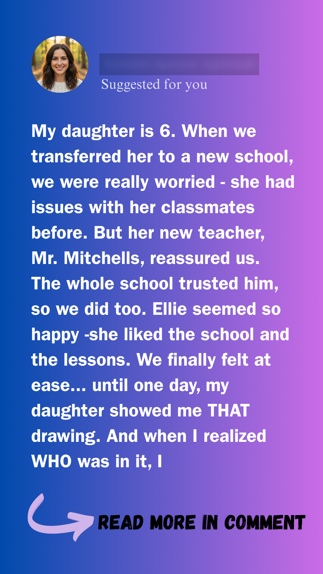 Prue, Ellie’s adoptive mom, first met Mr. Mitchels in his colorful classroom filled with books, toys, and the familiar scent of crayons and dry-erase markers. He greeted her warmly, praising Ellie’s placement into the school — a success Prue had worked so hard to secure. Still, Prue couldn’t shake the nervousness she felt about her daughter’s past experiences with bullying.