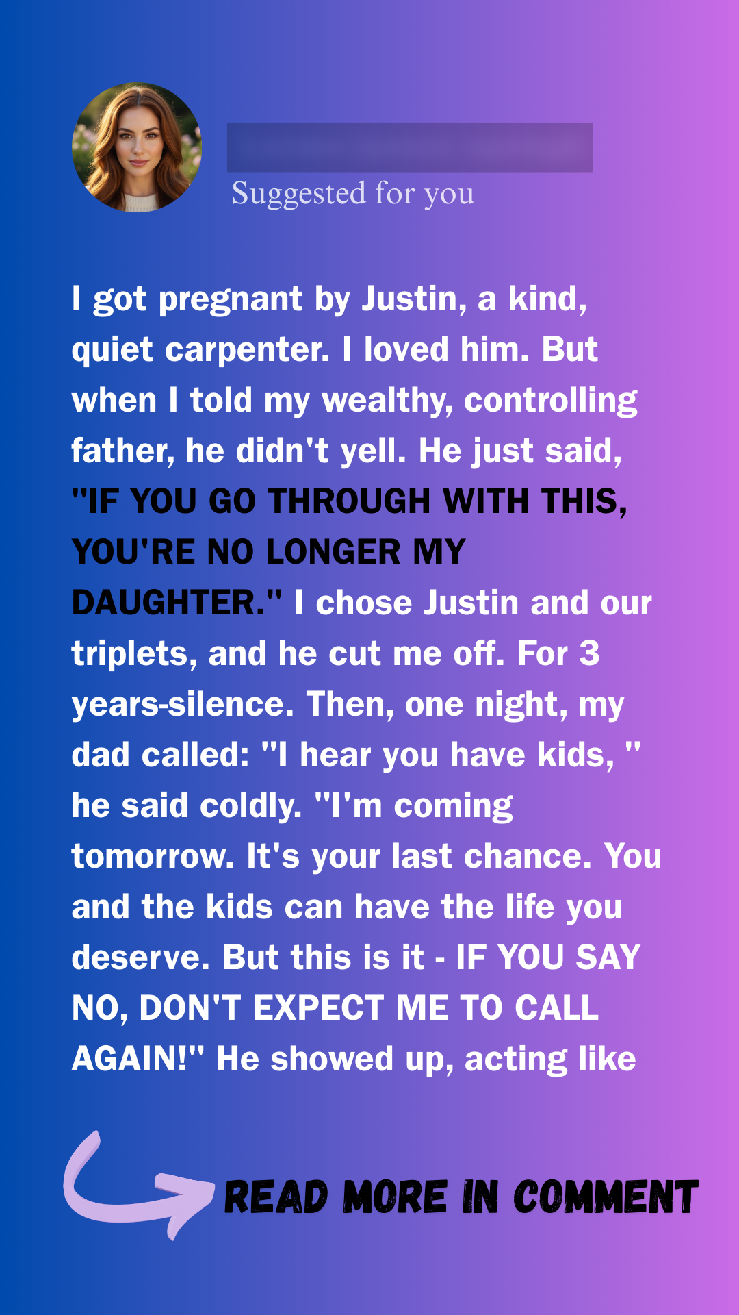 It was my father. Cold, clipped, unfamiliar. “I’ll be there tomorrow. You and the children deserve a better life. One last chance. If you say no… this is goodbye forever.”