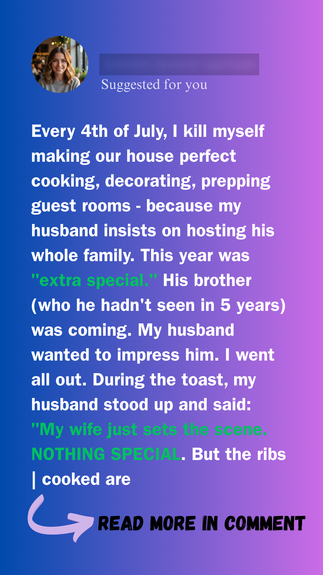 Every Fourth of July, Leona pours her heart into the perfect celebration — while her husband Joel takes all the praise. But when one chaotic moment ignites the truth, everything changes.