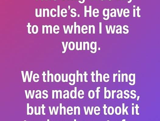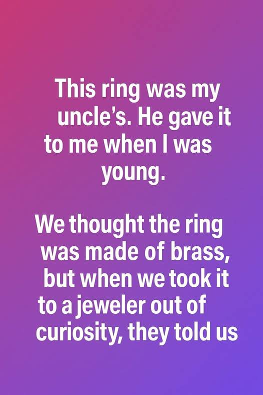 “You know this isn’t brass, right?” he said gently. He explained that the ring was actually made of solid gold, crafted by hand, and likely over a hundred years old. My uncle had never mentioned it, and I realized he must have known its true worth all along.