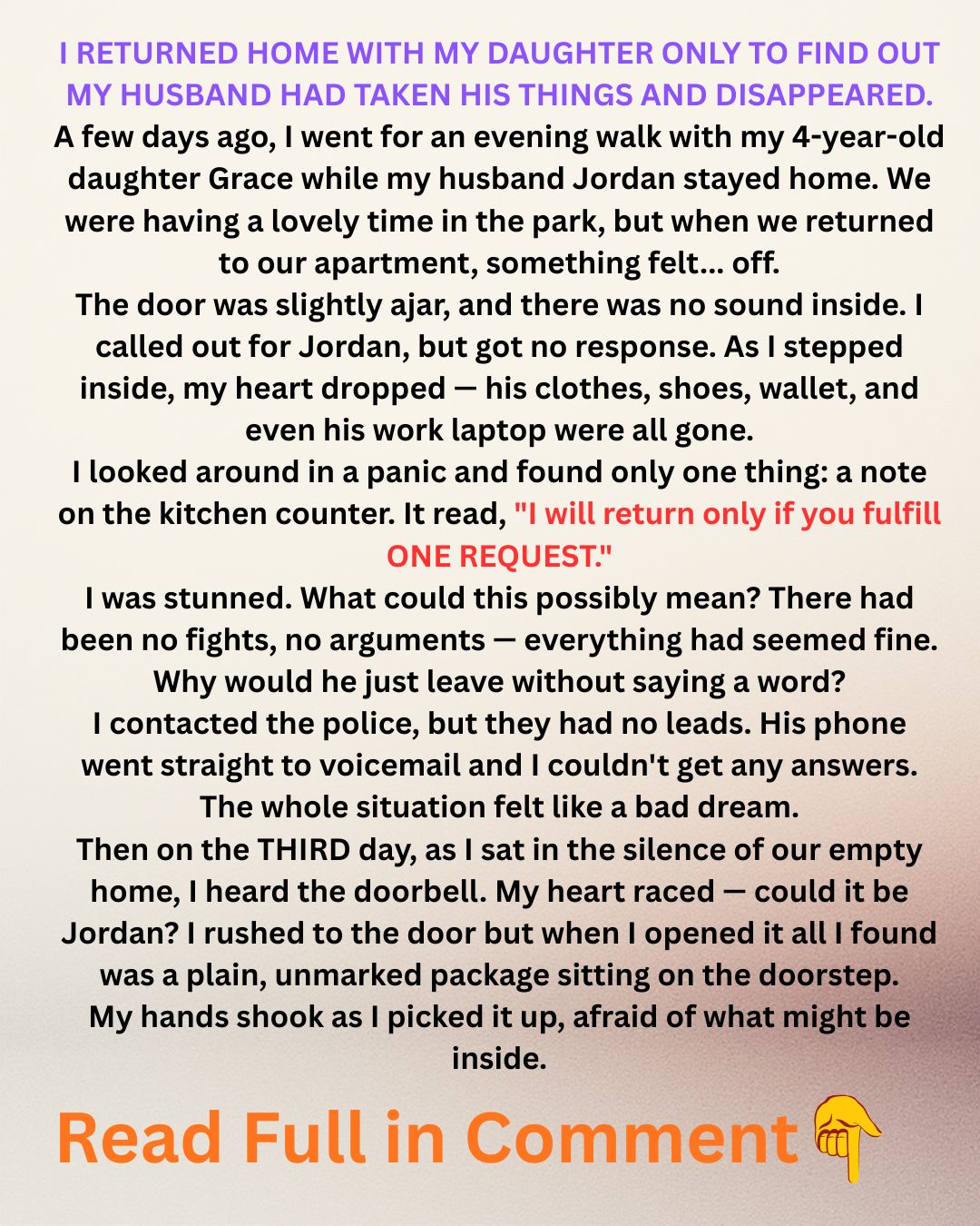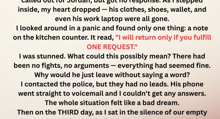 Where everything you thought you knew suddenly doesn’t make sense anymore? That’s exactly how I felt when I found that note from my husband, telling me he’d only return if I fulfilled “one request.”