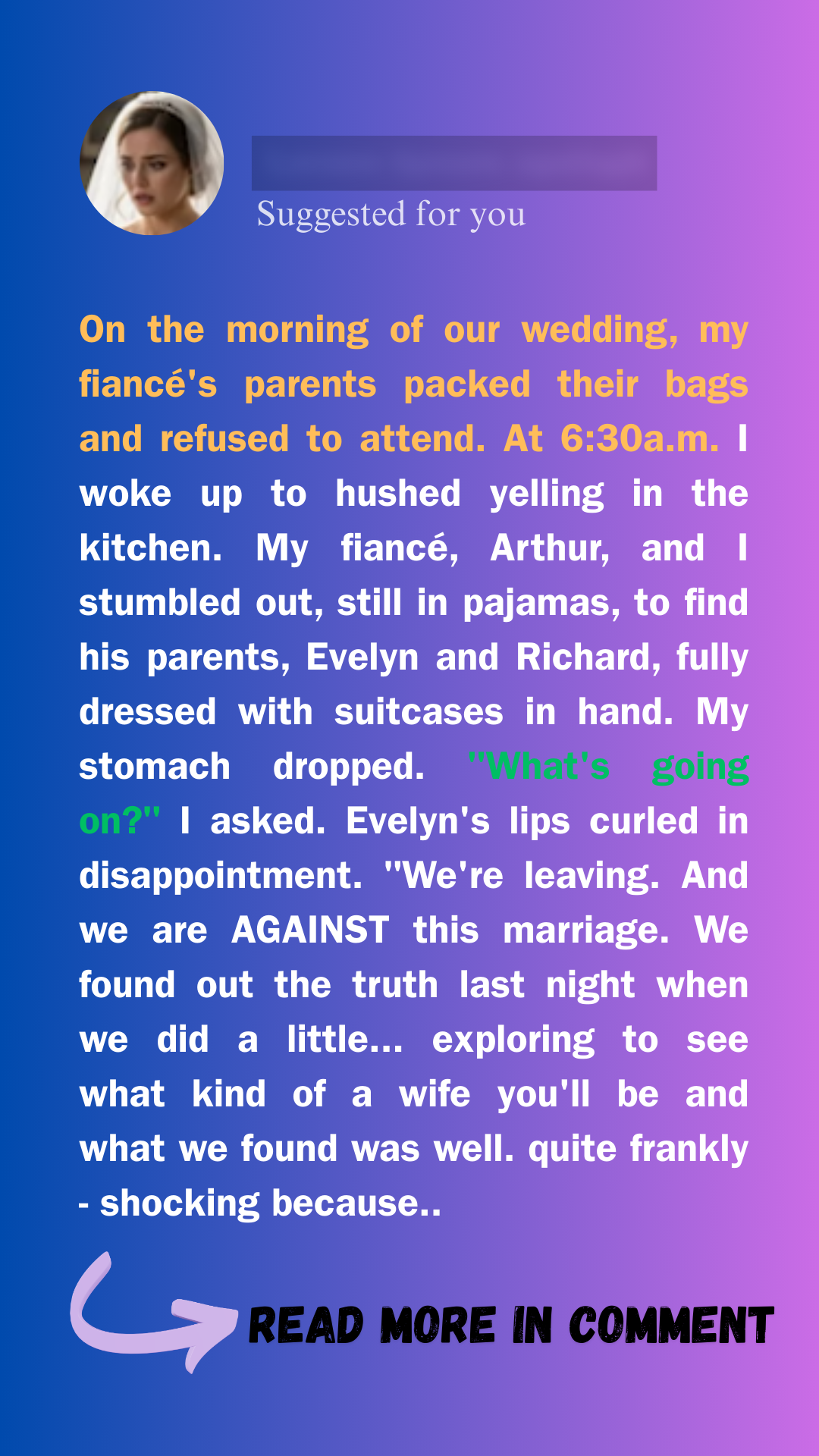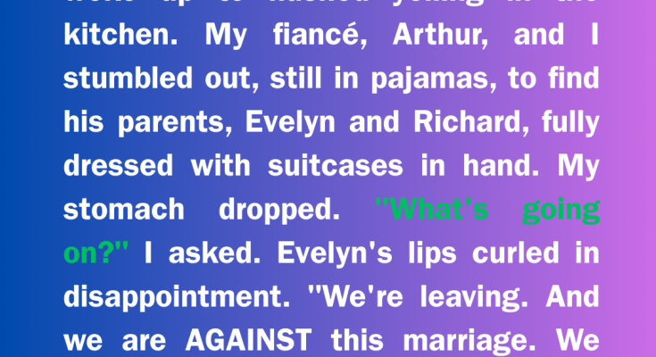 Everything was ready — the venue, the menu, the guest list — and the only small hitch was that I hadn’t spent much time with Arthur’s parents, Evelyn and Richard. They lived out of town, and our interactions had always seemed pleasant enough. When they arrived the night before the wedding, they even praised our home and expressed how lovely everything looked.