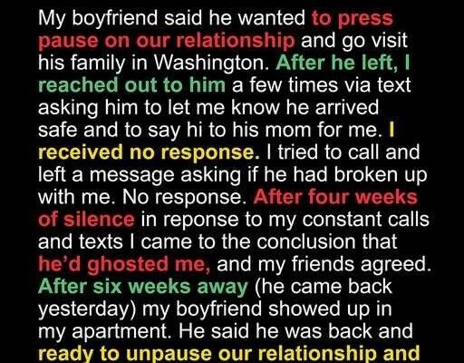 He replied, “I’m ready to unpause our relationship. We’ll talk tomorrow.”