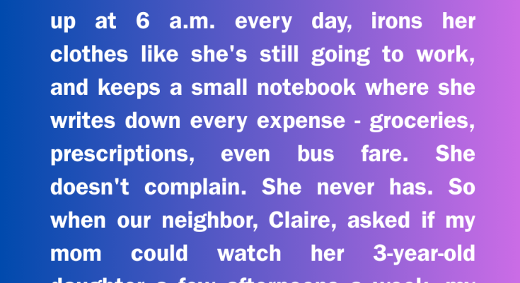 My mom is 73 years old. She wakes up at 6 a.m. every day, keeps the same routine she had when she worked at the library — face cream, neatly ironed blouse, coffee brewed in that chipped old pot she refuses to replace — and then sits at the kitchen table with a small black notebook, writing down every expense from the day before: four dollars for milk, thirty-eight cents for gum. She never complains — which is probably why some people think her kindness means weakness.