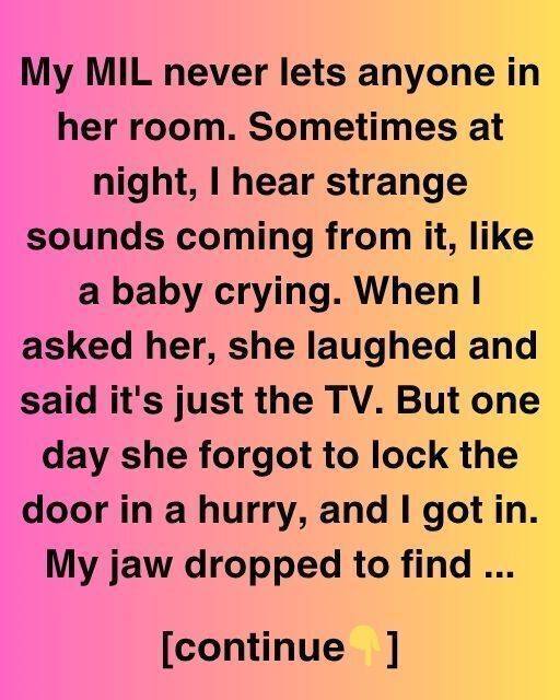 My mother-in-law never let anyone enter her room. Every night, I’d hear what sounded like a baby crying, but she always claimed it was just the TV. One afternoon, she forgot to lock the door—and curiosity led me inside.
