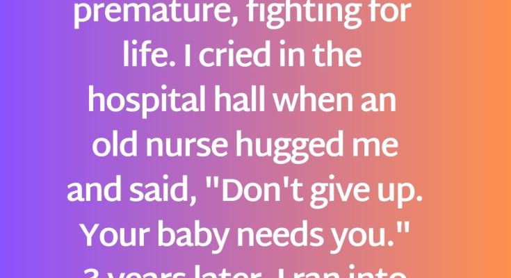 One afternoon at a local community event, a familiar face caught my eye — the same nurse whose kindness helped carry me through my darkest days. She recognized us instantly and walked over, smiling with the same warmth I remembered so vividly. Cradled in her arms was a tiny baby, fragile and wide-eyed, reminding me so much of my son’s early days.