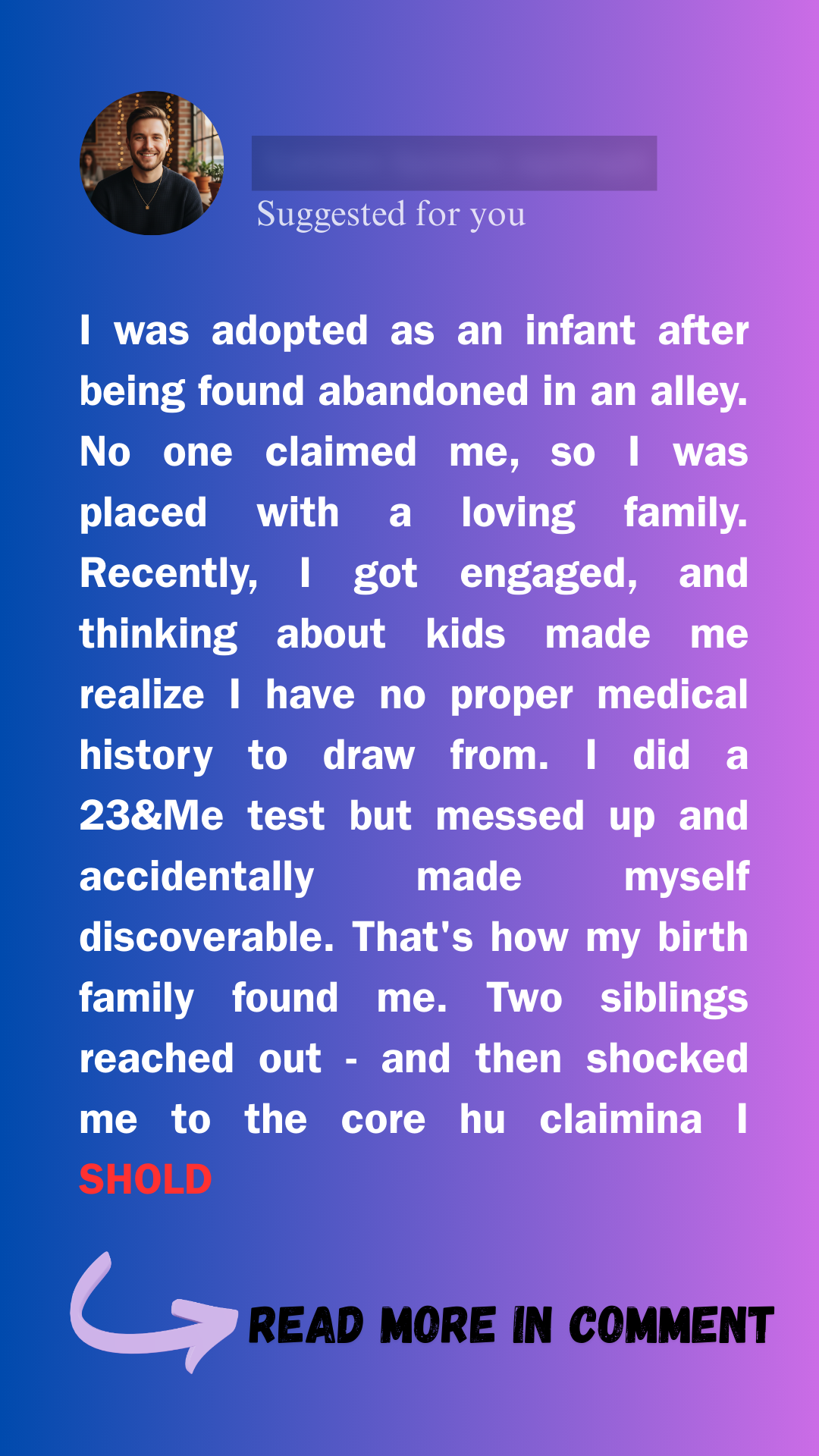 Finally, the messages took a dramatic turn: Their mother was sick and needed a liver transplant. They claimed none of her biological children were a match — except me. Suddenly their request wasn’t just about reconnecting, it was about saving a life. I was conflicted.