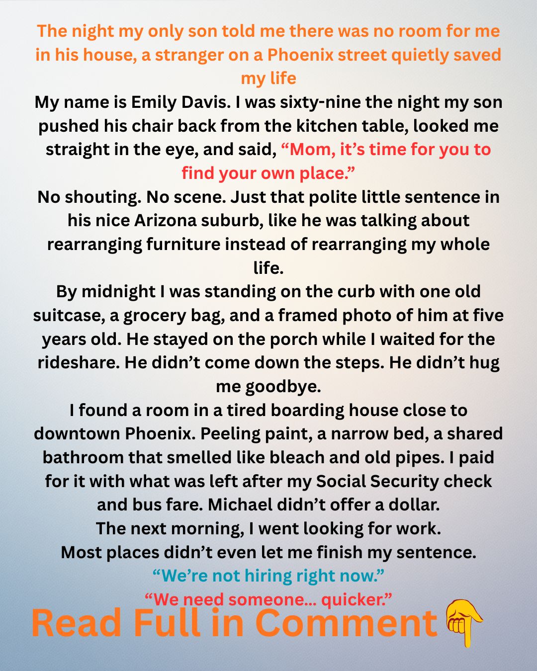 But going to the police meant saying out loud that my own son wanted me gone. It meant putting into words something I could barely accept in my mind. I spent the rest of the day walking through the city, circling the same blocks without realizing it.