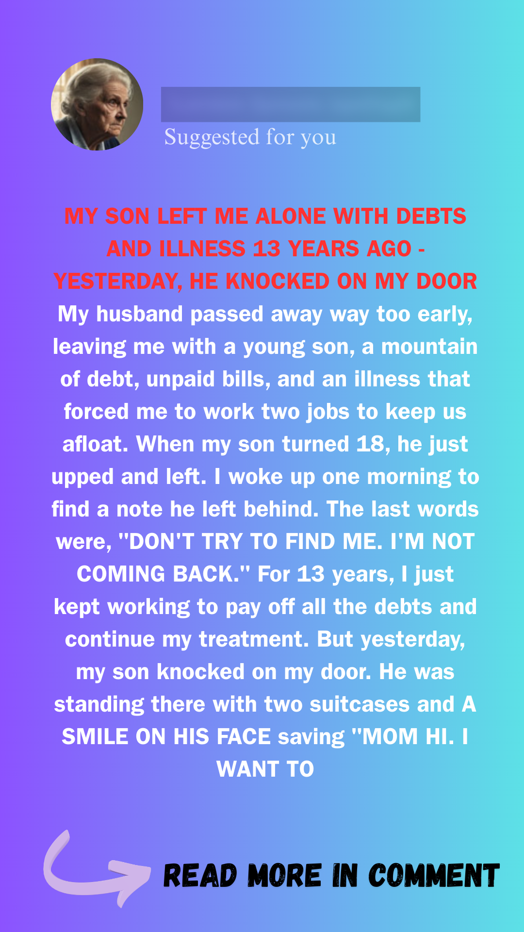 Thirteen Years After Leaving Me Sick and in Debt, My Son Showed Up at My Door