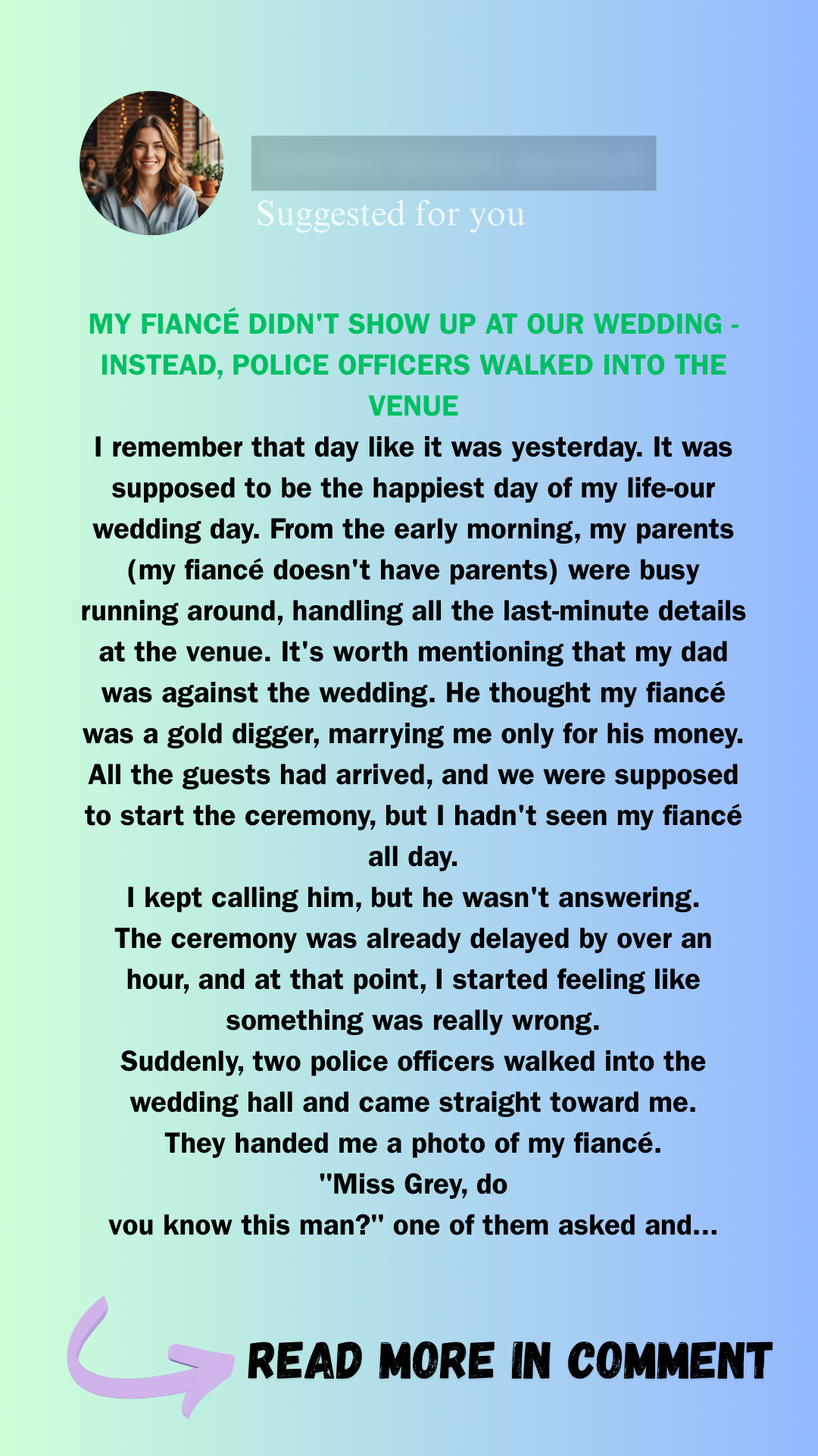 I remember that day like it was yesterday. It should have been the happiest moment of my life — my wedding day. But instead of hearing the music and seeing my fiancé at the altar, I stood frozen as two police officers walked right toward me holding a photo of him.