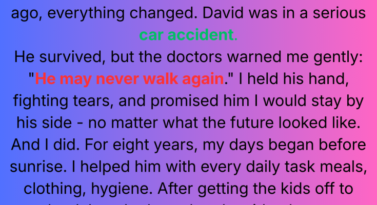 After eight years of sacrificing everything to care for my paralyzed husband, I watched him take his first steps with tears of joy streaming down my face. One week later, those same hands that had fed him, bathed him, and held him through his darkest moments were trembling as I held divorce papers and learned the devastating truth.