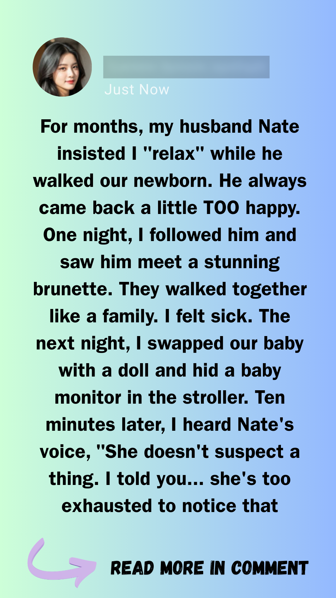Sure enough, he didn’t check the stroller before leaving — and headed straight back to the same coffee shop with the same woman. I listened through the monitor as they sat together. Then, the truth came out: Nate callously said he married me only because of the inheritance waiting for us, and he planned to be with this woman, using our son and my exhaustion as cover.