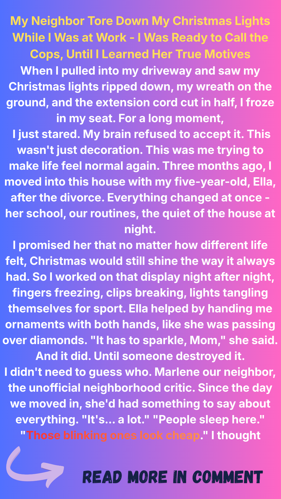 The second time, Ella was outside drawing chalk stars. Marlene came over, frowned, and said, “Some people like their curb uncluttered.” I laughed, because what else do you even do with that?
