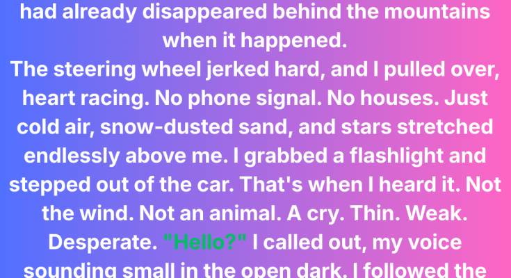 The cry came again, weaker, more desperate. I grabbed my flashlight and marched into the scrub and snowdrifts, following the sound.