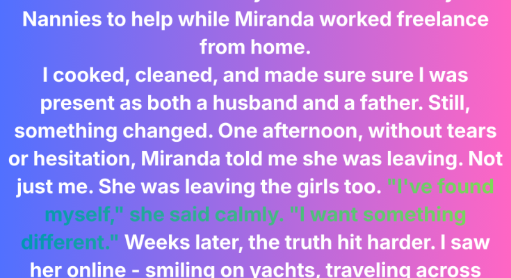 I earned enough to keep us comfortable — not luxurious, but we managed family vacations twice a year. The girls had a part-time nanny while Miranda worked as a freelancer from home. I always did my part, too. I cleaned every week, handled grocery runs, and even cooked meals. I never wanted her to feel like the housework was all on her shoulders.