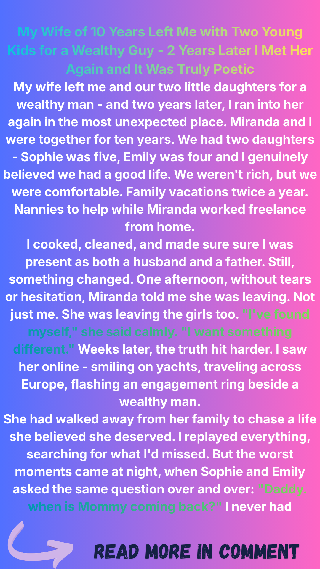 But I had to keep going. I worked harder, saved more, and spent every free moment with the girls. They needed me. I told myself I didn’t care what Miranda was doing anymore.