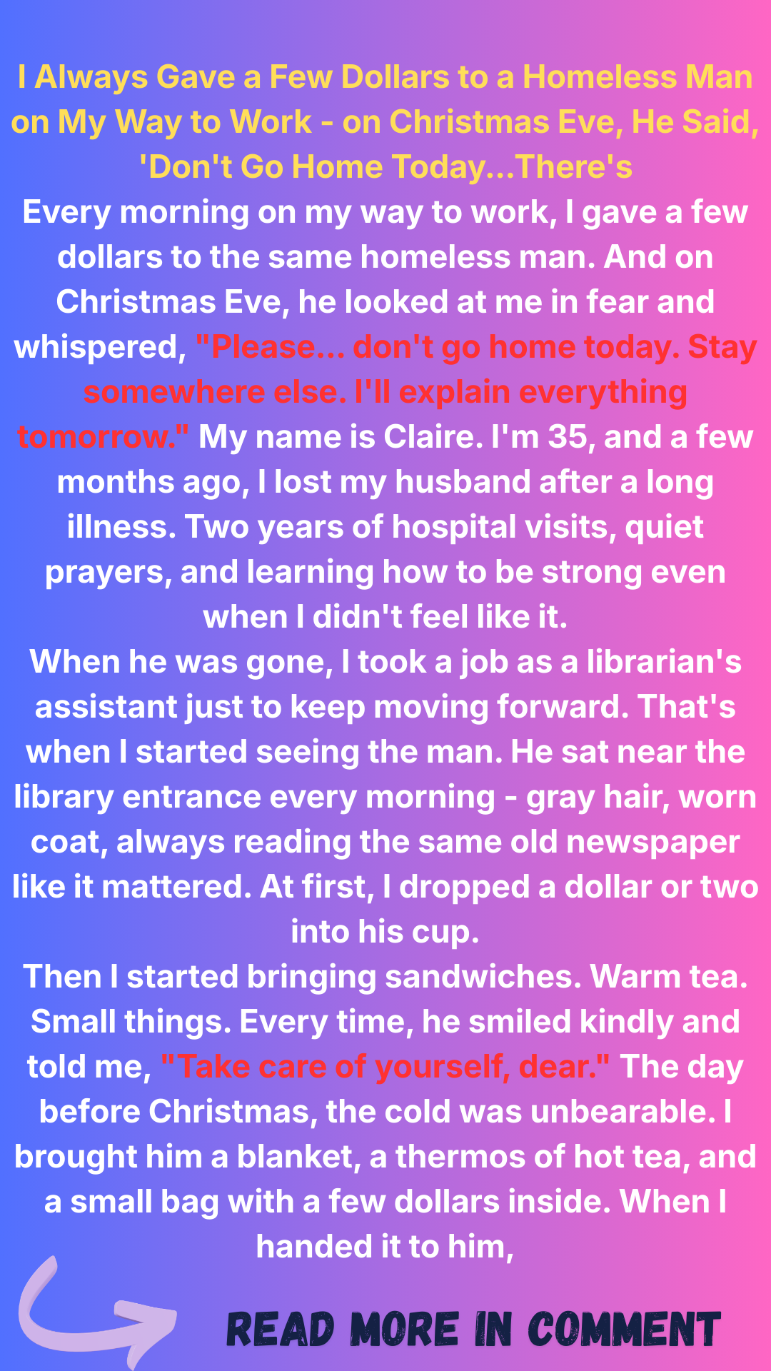 My first Christmas as a widow was supposed to be quiet and predictable: work at the library, go home to an empty house, repeat. Instead, the old man on the bench outside—who I thought was just another stranger I gave sandwiches to—suddenly changed everything.