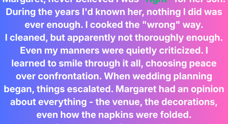 I had been swallowing Margaret’s poison for three years. I’d bent over backwards to earn her respect before the engagement and put up with every slight since.